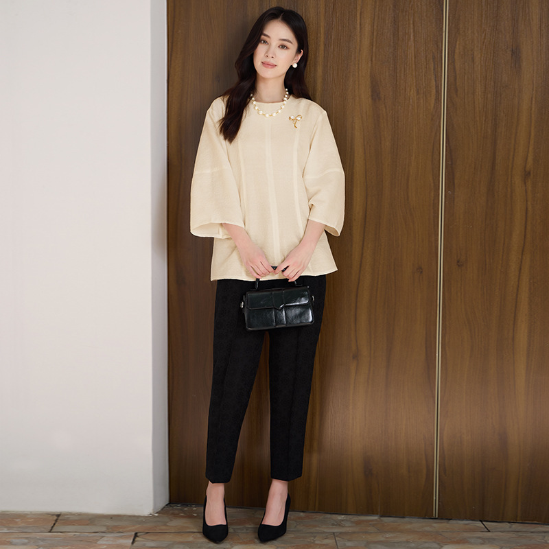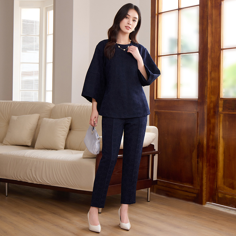 Ladies Jacquard Pattern 3/4 Sleeve Top & Casual Pants Set